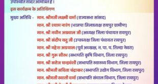 जिला पंचायत क्षेत्र क्रमांक 06 के अंतर्गत समाज सेवा और ग्राम विकास में योगदान देने वालों का होगा सम्मान तिल्दा नेवरा खोज खबर छत्तीसगढ़ संवाददाता संतोष कुमार यदु तिल्दा-नेवरा/रायपुर।जिला पंचायत क्षेत्र क्रमांक 06 के अंतर्गत ग्राम सरोरा में दिनांक 15 मार्च 2026, रविवार को महिला सम्मान एवं जनप्रतिनिधि सम्मान समारोह …