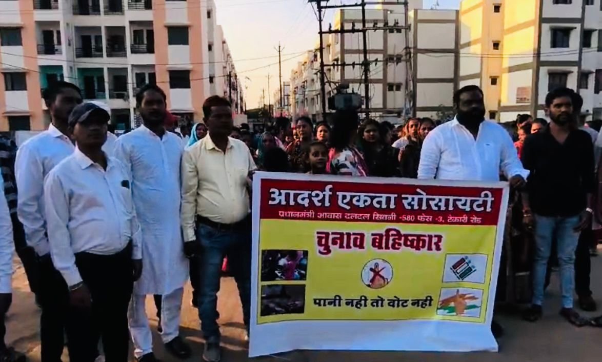 रायपुर.राजधानी में सरकार द्वारा बनाए गए पीएम आवास के निवासियों का सब्र अब चुनाव के बहिष्कार का पोस्टर लगाकर लोगों का गुस्सा फुटा दिखा,अब पीएम आवास के निवासियों ने निकाय चुनाव से पहले चुनाव का बहिष्कार कर दिया. दरअसल,दलदल सिवनी स्थित पीएम आवास कॉलोनी में रहने वाले लोगों ने लंबे समय से पानी और अन्य समस्याओं से जूझ रहें हैं जिसे लेकर कई बार निगम जोन कार्यालय क्रमांक 9 में धरना प्रदर्शन किए जनप्रतिनिधियों से गुहार लगा लगाकर थक गए रहवासियों का आरोप है कि हम लोग एक एक बूंद पानी के लिए तरसते हैं सरकार वादे करती है हर घर नल योजना की साथ ही साथ उन लोगों का आरोप है कि बिल्डिंग बनाने में भी भ्रष्टाचार हुआ है दीवारें फट रही है,छतों से छप्पर टूट रहा है,लेकिन हम लोगों की कहीं सुनवाई नहीं हुई थक हार कर हम लोगों ने चुनाव का बहिष्कार करना पड़ रहा है, दिया.असुविधाओं के अंबार से परेशान लोगों ने कॉलोनी के बाहर चुनाव बहिष्कार का बैनर लगाकर प्रदर्शन किया.