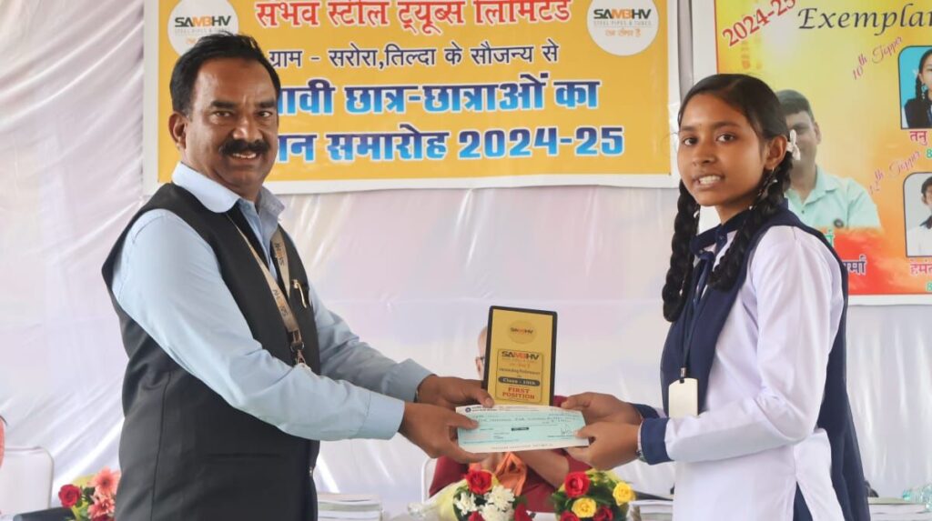 संभव स्टील ट्यूब्स लिमिटेड, सरोरा-तिल्दा के सौजन्य से प्रतिवर्ष आयोजित होने वाला मेधावी छात्र-छात्रा सम्मान समारोह एवं शाला प्रवेश उत्सव इस वर्ष भी गरिमामय वातावरण में संपन्न हुआ। आयोजन स्थल रहा शासकीय उच्चतर माध्यमिक विद्यालय सरोरा, जहां बच्चों की प्रतिभा और परिश्रम को सम्मानित करते हुए भविष्य को प्रोत्साहित किया गया।