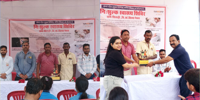 तिल्दा नेवरा  ख़ोज ख़बर छत्तीसगढ संवाददाता: संभव स्टील ट्यूब्स लिमिटेड, सरोरा-तिल्दा के सौजन्य से ग्राम पंचायत बिलाड़ी में विशाल निशुल्क चिकित्सा शिविर का आयोजन किया गया।