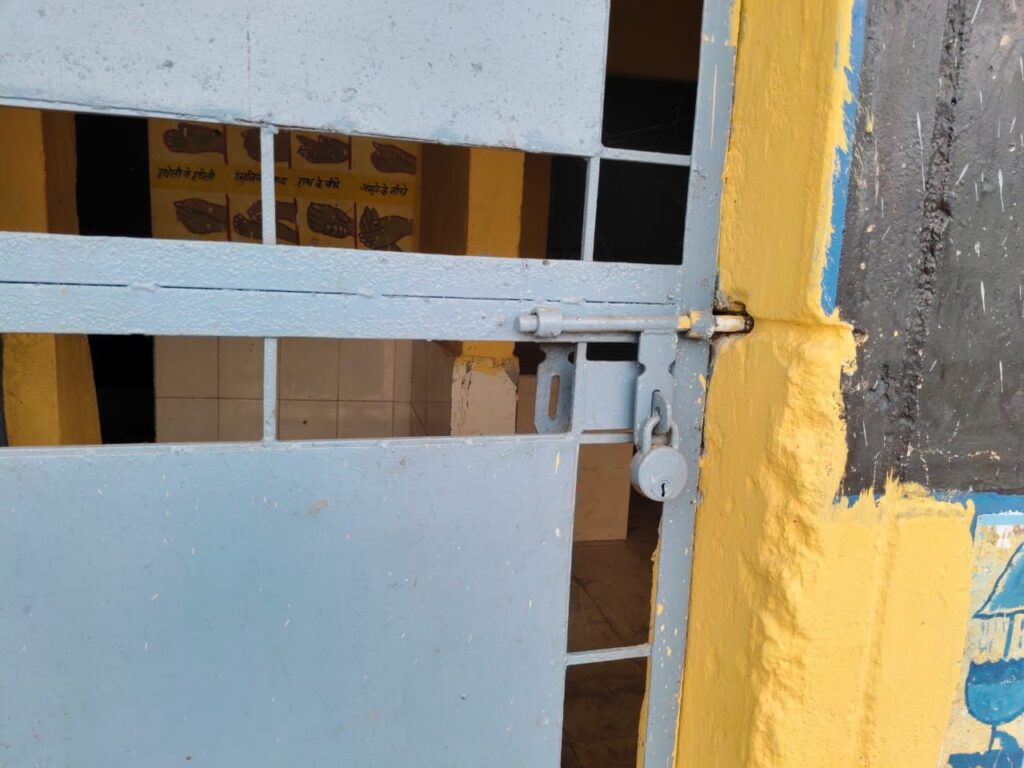 नारायण धीरे के घर के पीछे, वार्ड 09 की बस्ती में स्थित शौचालय पिछले एक महीने से ताले में जकड़ा हुआ है। मानो कोई ऐतिहासिक धरोहर सुरक्षित की जा रही हो।
