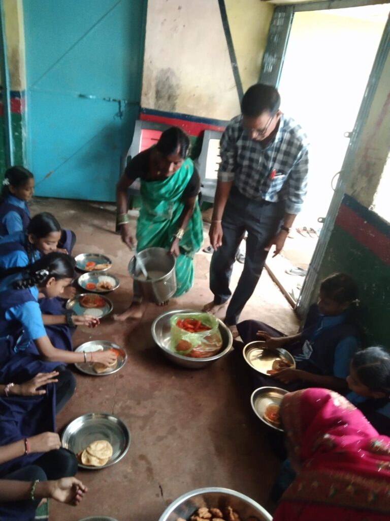 आयोजन में विद्यालय के सभी शिक्षक, विद्यार्थी एवं रसोईया उपस्थित रहे और स्नेहिल माहौल में सामूहिक भोज का आनंद लिया गया।
