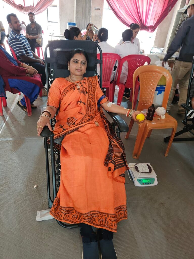 विशेष बात यह रही कि कार्यक्रम का शुभारंभ करने के बाद डॉ. चंद्रकला खुमान वर्मा ने स्वयं रक्तदान कर समाज और नगरवासियों को प्रेरणा दी। उन्होंने कहा कि—