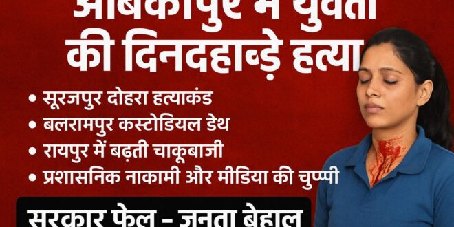 सूरजपुर दोहरा हत्याकांड, बलरामपुर कस्टोडियल डेथ, रायपुर में बढ़ती चाकूबाजी की घटनाएँ, पैर पसारते आर्थिक अपराधियों का विकराल साम्राज्य, बदहाल सड़कें और ध्वस्त प्रशासनिक व्यवस्था — यानी वर्तमान भाजपा सरकार पूरी तरह असफल सिद्ध हो रही है।