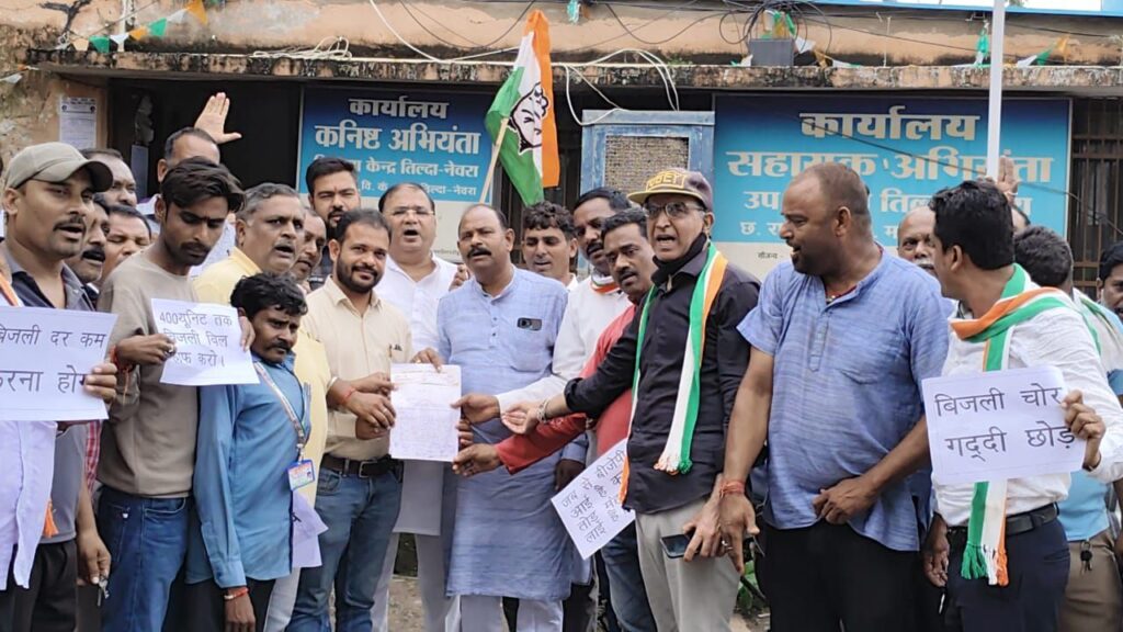 काँग्रेस पार्टी निरन्तर बिजली कटौती के खिलाफ विरोध दर्ज करते हुए बिजली बिल हाफ योजना पुनः शुरू करने की माँग कर रही है। इसी कड़ी में 3 और 4 अक्टूबर को छत्तीसगढ़ प्रदेश काँग्रेस कमेटी ने पूरे प्रदेश में विशाल विरोध दर्ज करके बिजली ऑफिस घेराव का सर्कुलर सभी जिला और ब्लॉक काँग्रेस कमेटी को जारी किया है। तिल्दा-नेवरा में भी ब्लॉक काँग्रेस कमेटी शहर और ग्रामीण के संयुक्त तत्वावधान में बिजली ऑफिस का घेराव करके भारी हल्ला बोला। वरिष्ठ अभियंता को शासन के नाम ज्ञापन सौंपते हुए चेतावनी दी, कि बिजली कटौती पर शीघ्रता से नियंत्रण नहीं हुआ और बिजली बिल हाफ योजना वापस शुरू नहीं हुई, तो जनहित में काँग्रेस पार्टी भारी आंदोलन करेगी।