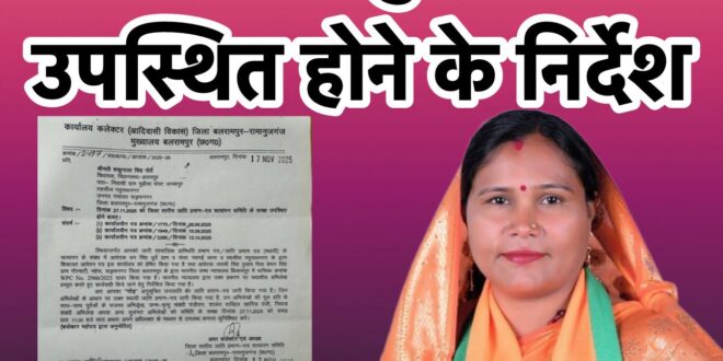 बलरामपुर-रामानुजगंज (छ.ग.) से दिनांक 17 नवंबर 2025 को जारी एक महत्वपूर्ण पत्र के माध्यम से, श्रीमती शकुन्तला सिंह पोर्ते, विधायक, विधानसभा-प्रतापपुर को उनके जाति प्रमाण पत्र के सत्यापन के संबंध में जिला स्तरीय जाति प्रमाण पत्र सत्यापन समिति के समक्ष को उपस्थित होने का निर्देश दिया गया है।