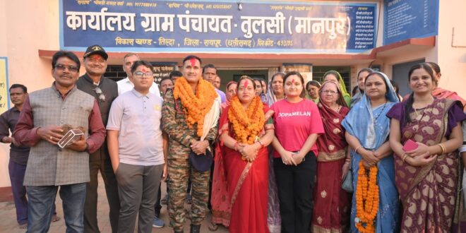 तिल्दा-नेवरा परिक्षेत्र के बहुचर्चित सैनिक ग्राम तुलसी (मानपुर) में रविवार को ऐसा ऐतिहासिक नज़ारा देखने को मिला, जिसे पूरे क्षेत्र के लोग बरसों याद रखेंगे। ग्राम के गौरव, माटी पुत्र सूबेदार मेजर आलोक वर्मा, जो वर्ष 1994 में भारतीय सेना में भर्ती हुए और कारगिल युद्ध, ऑपरेशन पराक्रम, जम्मू-कश्मीर में 10 वर्ष काउंटर-इंसर्जेंसी, तथा सियाचिन ग्लेशियर में 2 वर्ष जैसी सबसे चुनौतीपूर्ण जगहों पर 31 वर्षों तक सेवा देने के बाद सेवानिवृत्त हुए—उनके सम्मान में पूरा गांव उमड़ पड़ा।