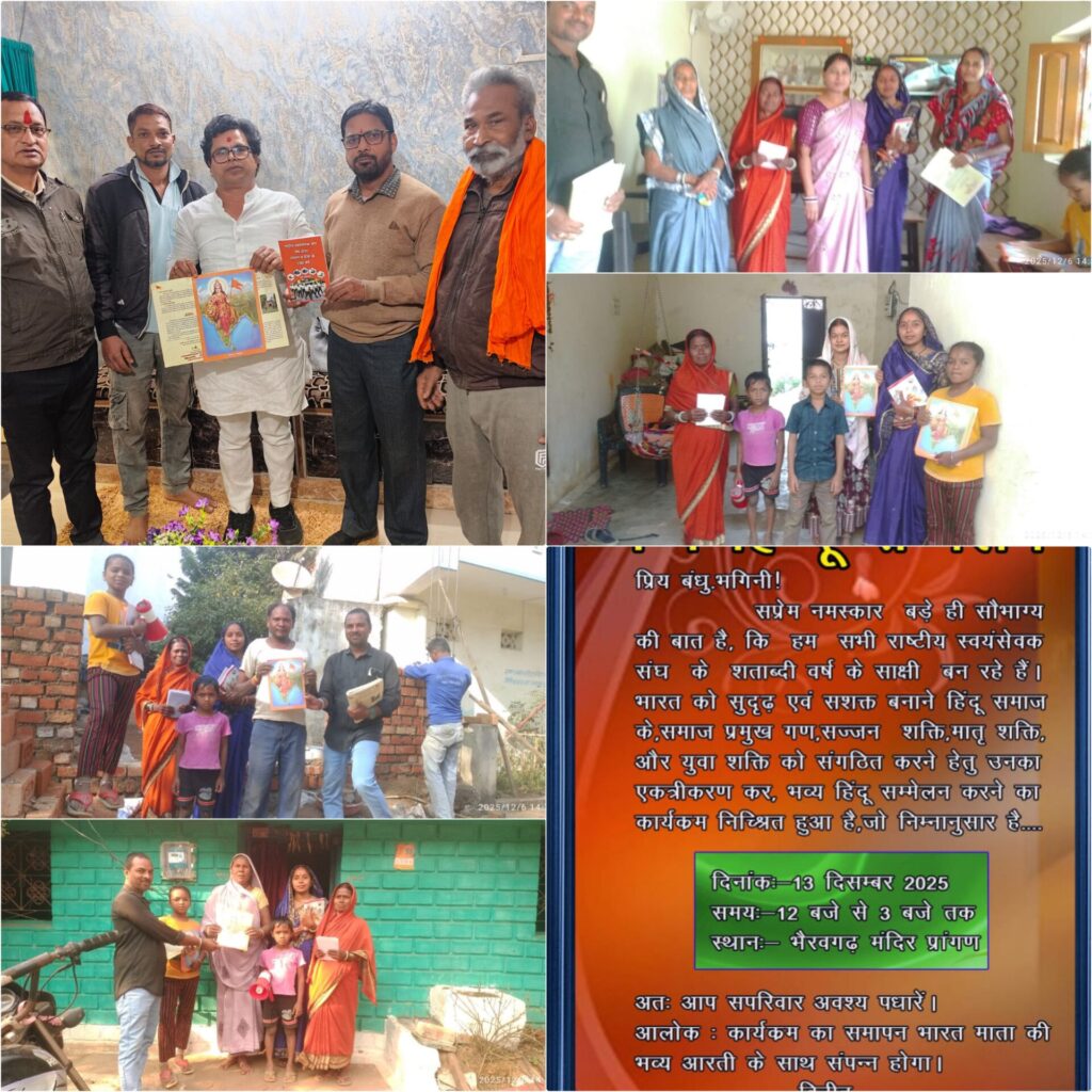 राष्ट्रीय स्वयंसेवक संघ का शताब्दी वर्ष उत्सव : तिल्दा–नेवरा में घर–घर संपर्क अभियान तेज, चार जगहों पर होगा भव्य हिन्दू सम्मेलन