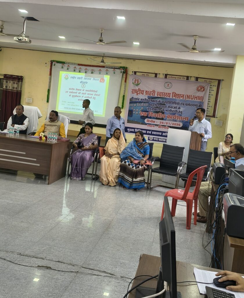 राष्ट्रीय शहरी स्वास्थ्य मिशन अंतर्गत बिरगांव नगरीय क्षेत्र के लिए नगर निगम बिरगांव में शहरी स्वास्थ्य उन्मुखीकरण कार्यशाला का आयोजन किया गया। कार्यक्रम में माननीय महापौर श्री नंदलाल देवांगन मुख्य अतिथि के रूप में उपस्थित रहे। साथ ही सभापति, नेता प्रतिपक्ष, एमआईसी सदस्य एवं पार्षदगणों की गरिमामयी उपस्थिति रही।