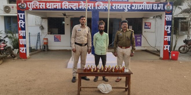 पुलिस से प्राप्त जानकारी के अनुसार थाना तिल्दा नेवरा, जिला रायपुर (ग्रामीण) में अपराध क्रमांक 50/25, धारा 34(2) आबकारी एक्ट के तहत दिनांक 04 फरवरी 2026 को यह कार्रवाई की गई।