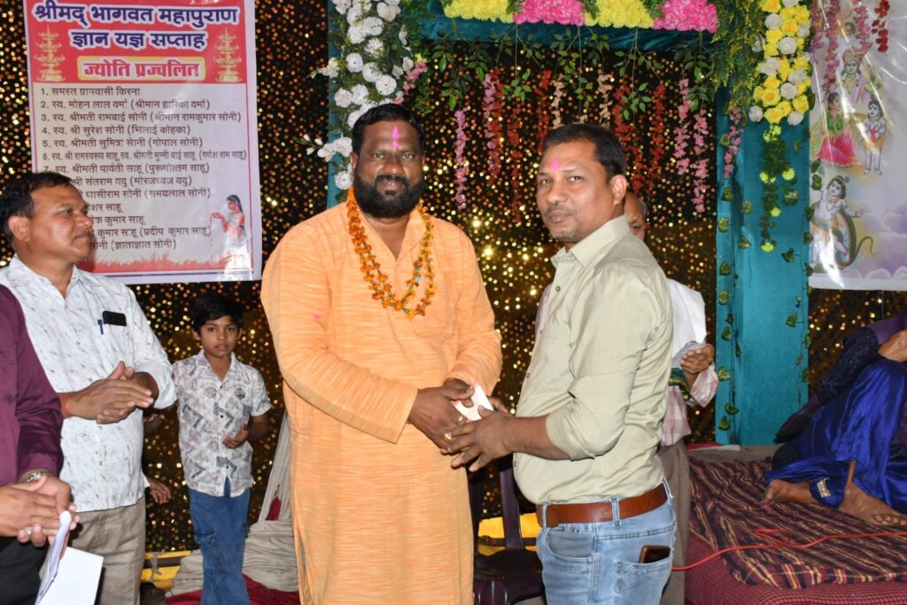 तिल्दा-नेवरा। ग्राम पंचायत किरना में आयोजित संगीतमय श्रीमद् भागवत कथा ज्ञान यज्ञ में भक्ति और आध्यात्म का अद्भुत संगम देखने को मिला। इस पावन अवसर पर श्रीमती शैल महेंद्र साहू, समाजसेवी एवं जिला पंचायत रायपुर की सभापति (महिला एवं बाल विकास विभाग) ने विशेष रूप से शामिल होकर कथा का श्रवण किया।