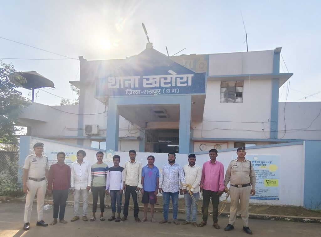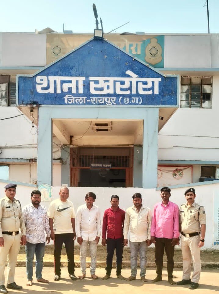 खरोरा, थाना जिला रायपुर ग्रामीण पुलिस ने होली पर्व के मद्देनजर कानून व्यवस्था बनाए रखने के लिए बड़ी कार्रवाई करते हुए 6 जुआरियों को रंगे हाथों गिरफ्तार किया है। आरोपियों के कब्जे से ₹14,500 नगद एवं 52 पत्ती ताश जब्त की गई है। मामला अप.क्र. 129/26, धारा 3(2) छत्तीसगढ़ जुआ (प्रतिषेध) अधिनियम 2022 के तहत दर्ज किया गया है। वरिष्ठ अधिकारियों के निर्देश पर कार्रवाई यह पूरी कार्रवाई श्वेता श्रीवास्तव सिन्हा (पुलिस अधीक्षक, रायपुर ग्रामीण) के दिशा-निर्देश, अतिरिक्त पुलिस अधीक्षक प्रशांत शुक्ला (ग्रामीण) के मार्गदर्शन तथा अनुविभागीय अधिकारी वीरेन्द्र चतुर्वेदी के पर्यवेक्षण में थाना प्रभारी खरोरा के नेतृत्व में की गई।