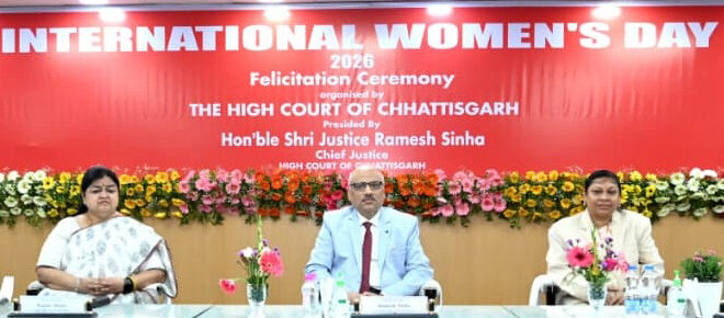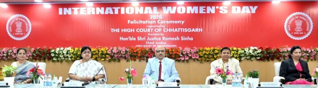 अंतर्राष्ट्रीय महिला दिवस–2026 के अवसर पर छत्तीसगढ़ उच्च न्यायालय के यूनिटी ऑडिटोरियम में एक गरिमामय सम्मान समारोह का आयोजन किया गया। कार्यक्रम में न्यायपालिका से जुड़े विभिन्न क्षेत्रों में उल्लेखनीय योगदान देने वाली 54 महिलाओं को सम्मानित किया गया।