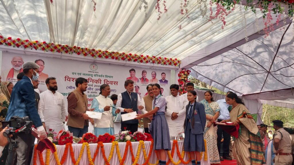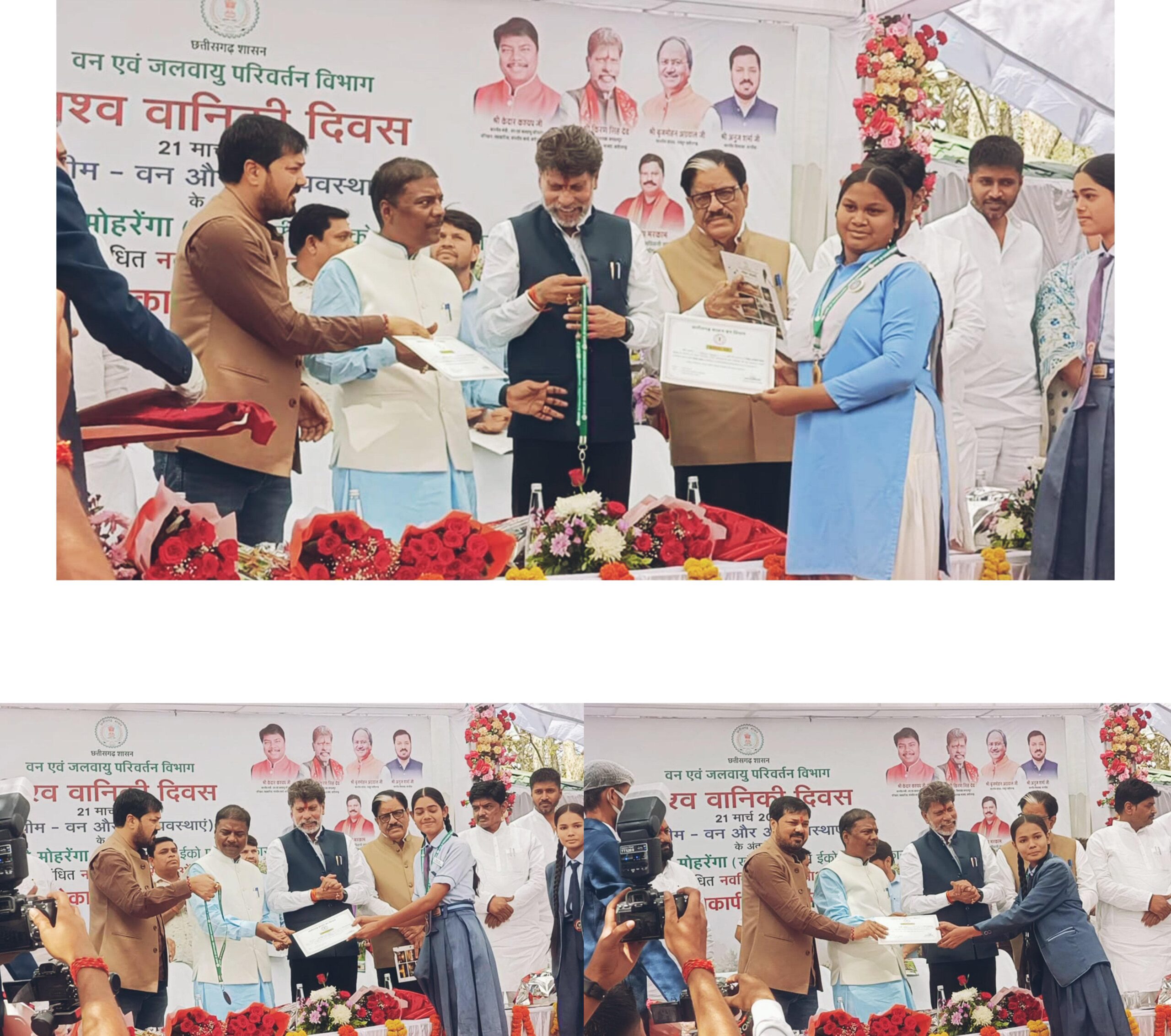 विजेता विद्यार्थियों को छत्तीसगढ़ शासन के वन एवं जलवायु परिवर्तन, परिवहन, सहकारिता एवं संसदीय कार्य मंत्री श्री केदार कश्यप के करकमलों से पुरस्कृत किया गया। इस अवसर पर मंत्री श्री कश्यप ने विद्यार्थियों को पर्यावरण संरक्षण के प्रति सजग रहने तथा वनों के महत्व को समझने का संदेश दिया।