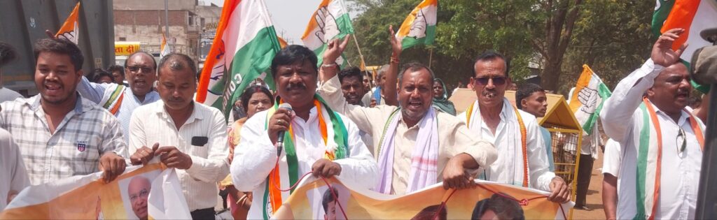 रायपुर जिला ग्रामीण कांग्रेस अध्यक्ष पप्पू बंजारे के नेतृत्व में कांग्रेस कार्यकर्ताओं ने तिल्दा-नेवरा में सड़कों पर उतरकर जोरदार विरोध प्रदर्शन किया। इस दौरान कांग्रेसियों ने राजस्व मंत्री टंकराम वर्मा के कार्यालय का घेराव कर सरकार के खिलाफ जमकर नारेबाजी की।